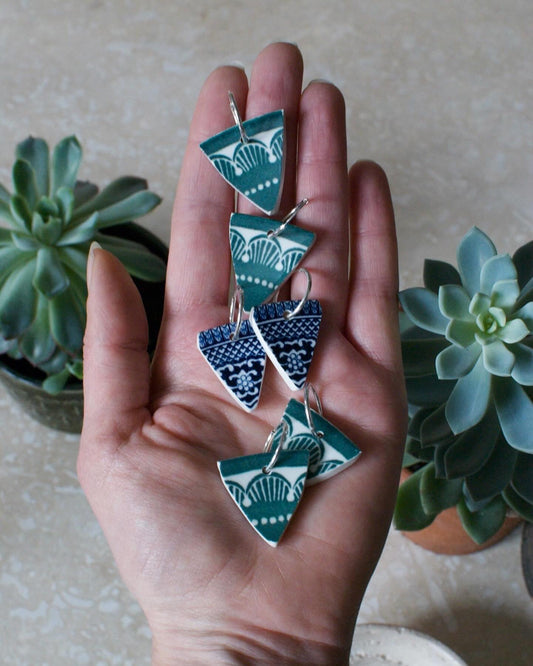1970's stoneware teal 'Majorelle' earrings on sterling silver hoops.