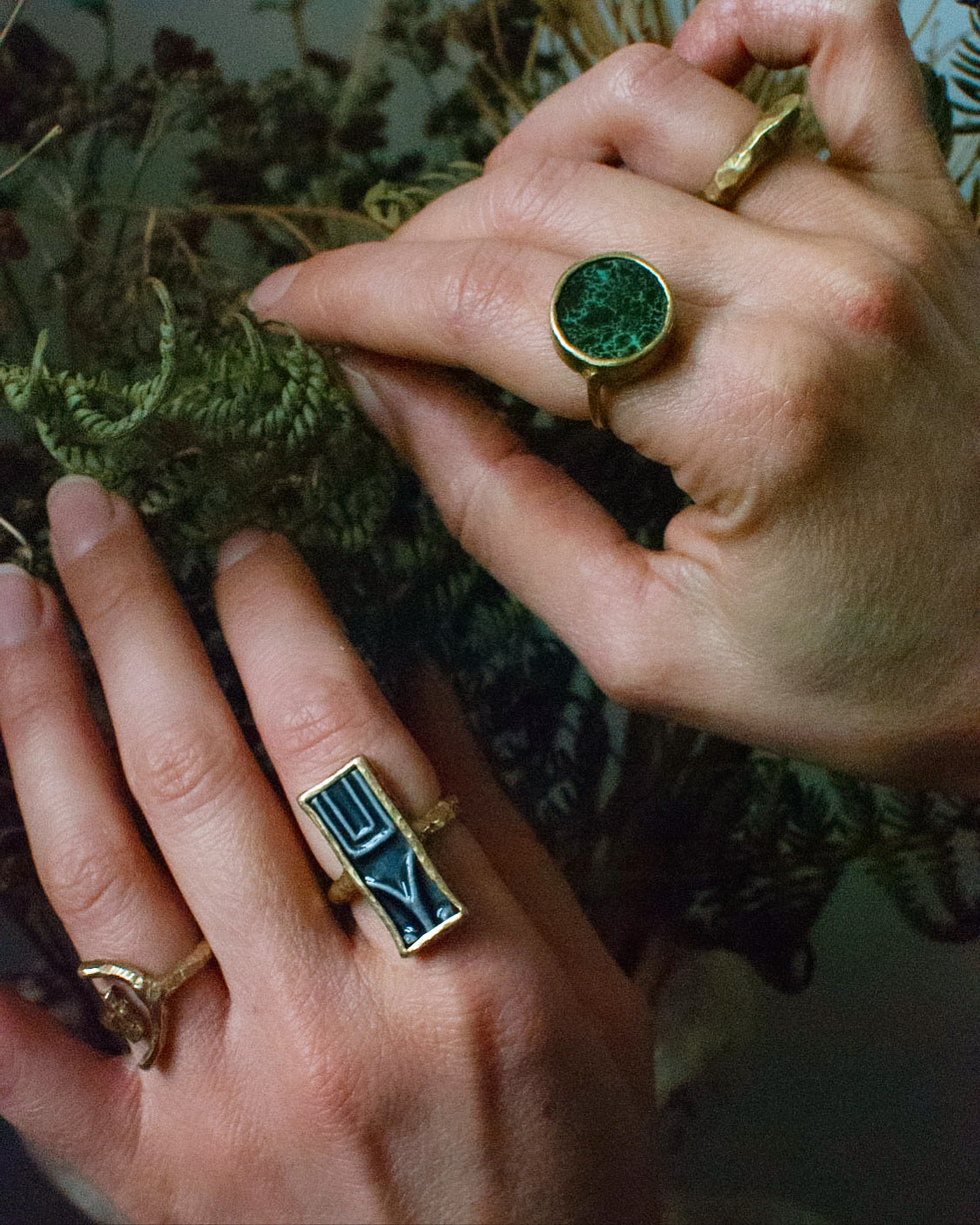 Solid Brass & Vintage Flint Grey Glaze Stoneware ‘Cypher’ Ring