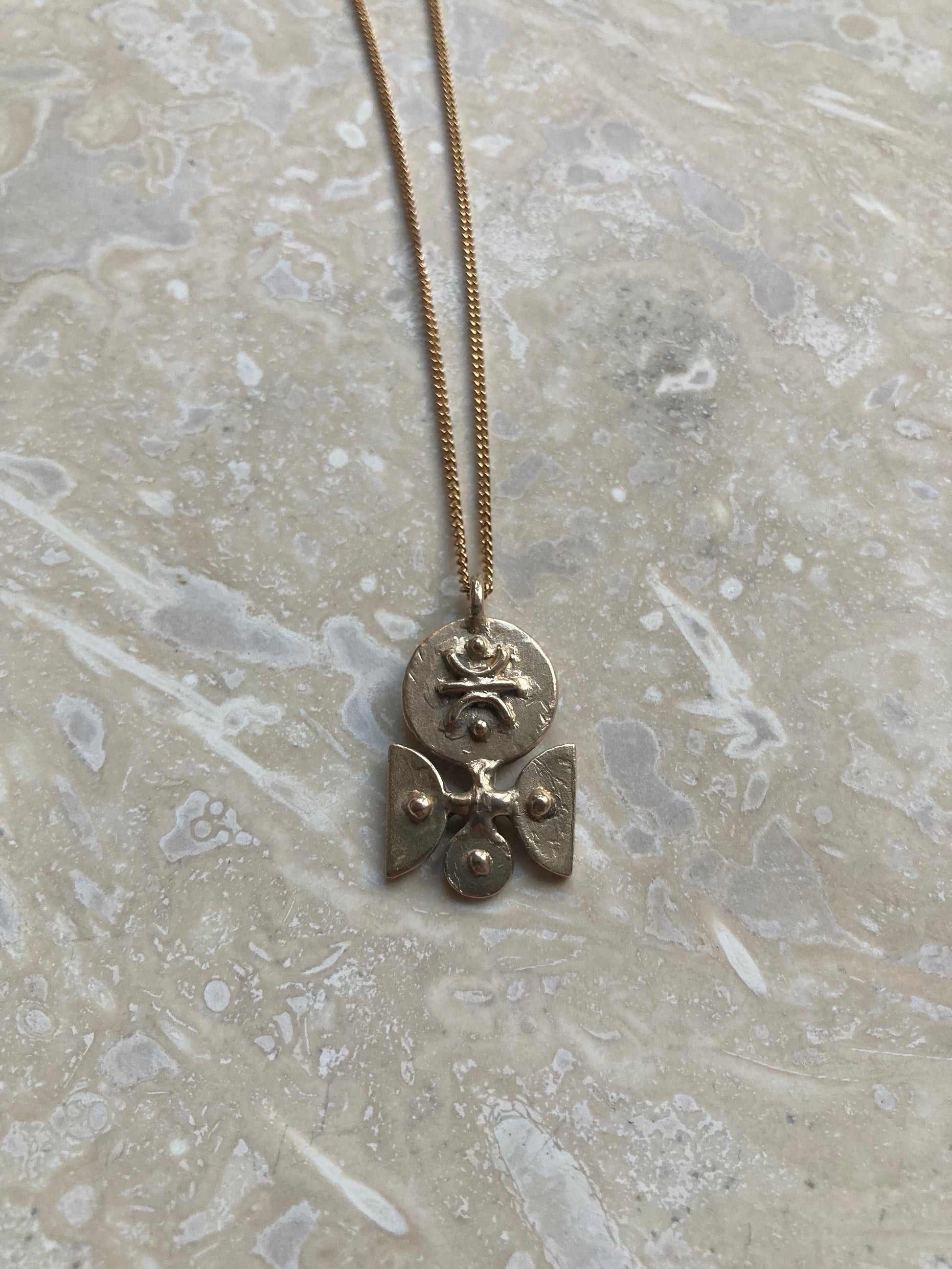 Solid Bronze Mini ‘Breja’ Necklace On Gold Plated Chain